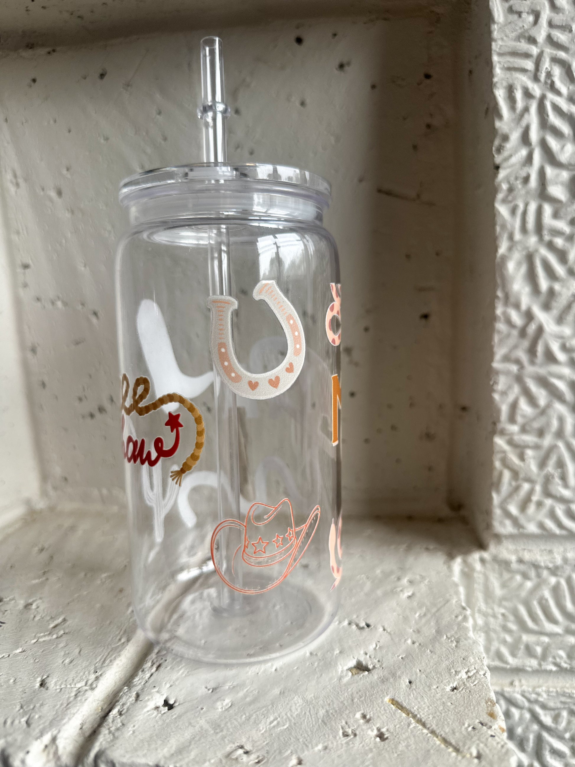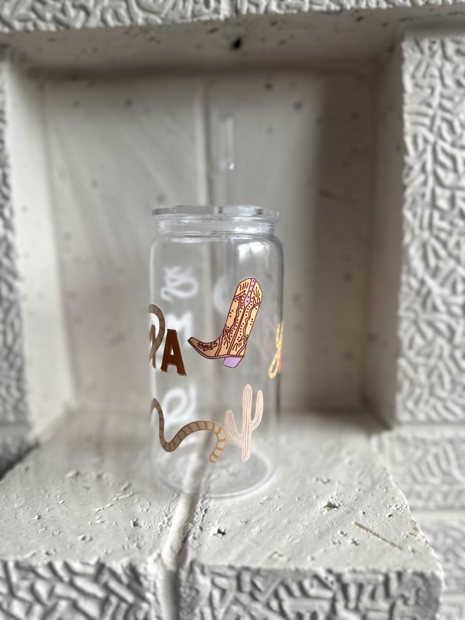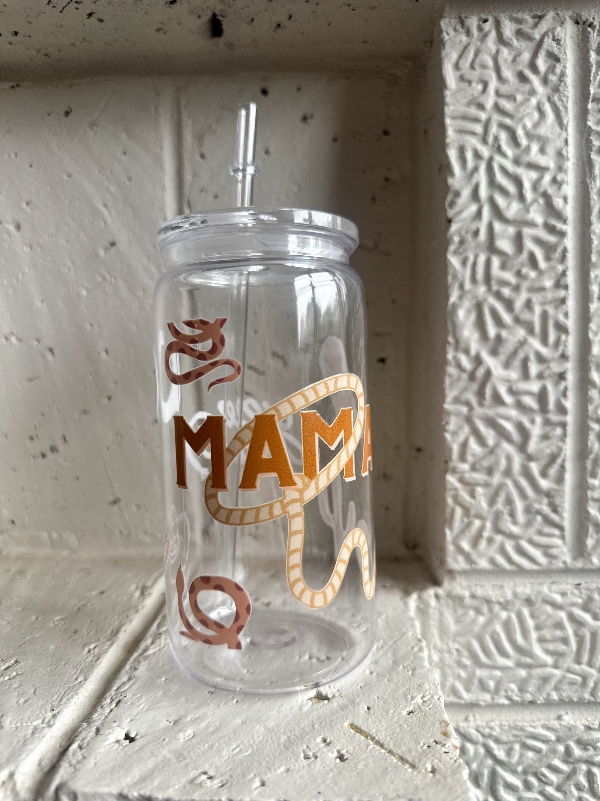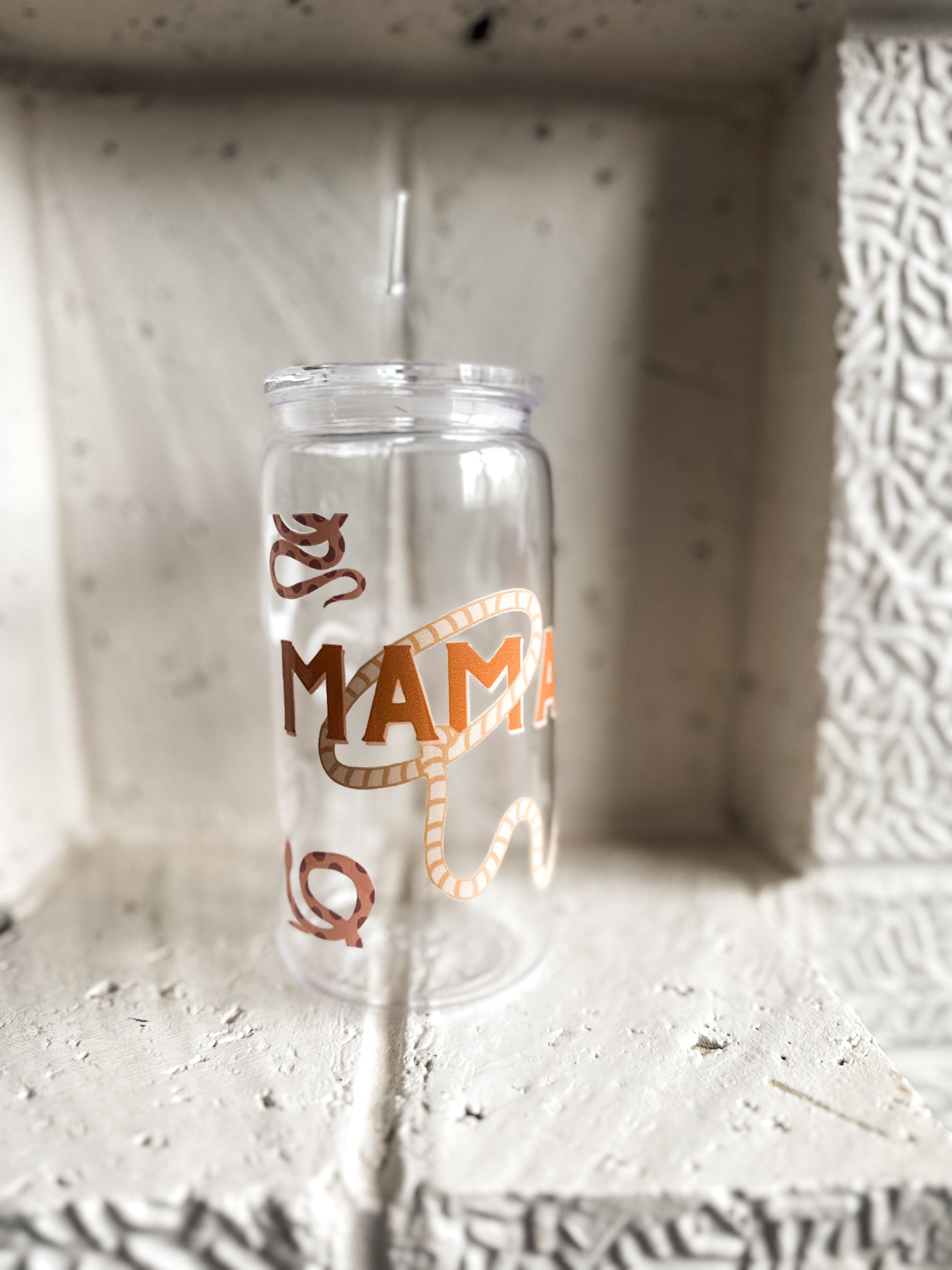 Sip in style with our bold and fun “MAMA” Western Can Cup! Featuring a unique western-inspired design with coiled snakes and warm earthy tones, this cup is perfect for the cool, modern mama. Whether you’re powering through iced coffee, smoothies, or just your daily hydration, this 16oz glass can adds a stylish touch to your routine.