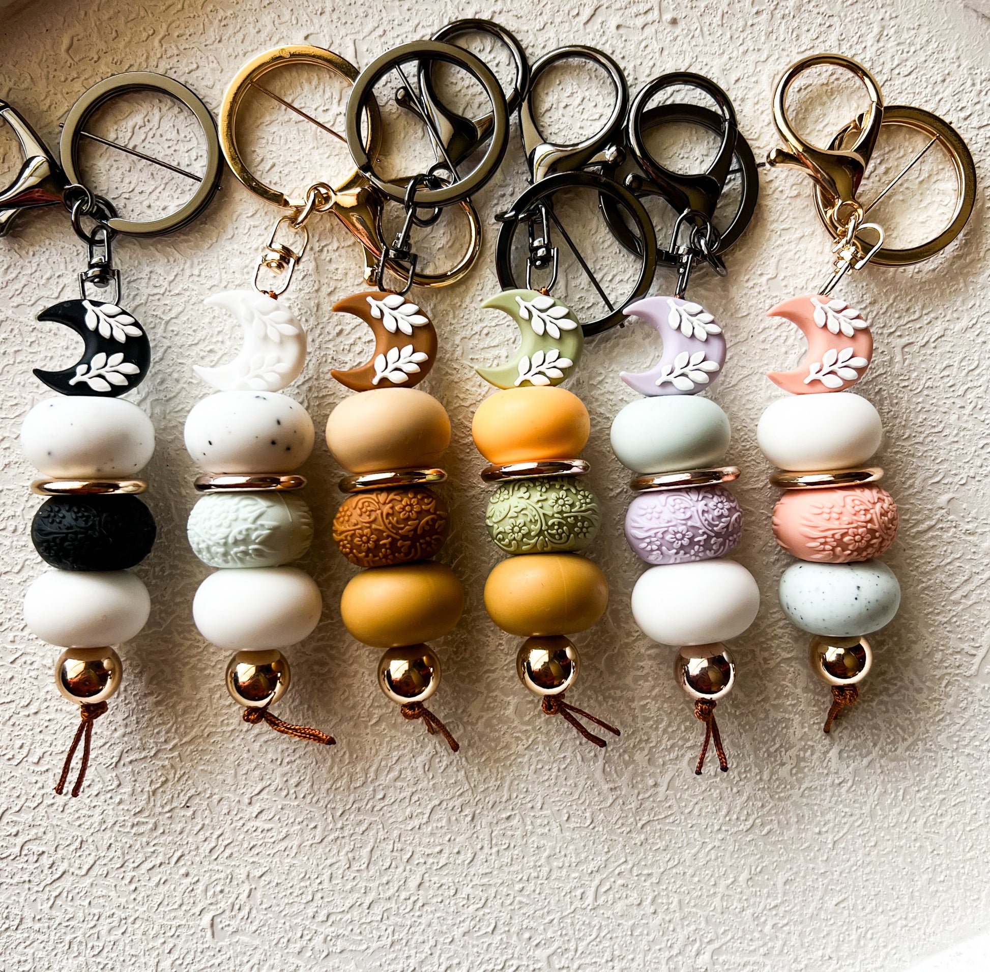 These are our stunning handmade keychains; made from high quality Silicone, acrylic & Beechwood beads.