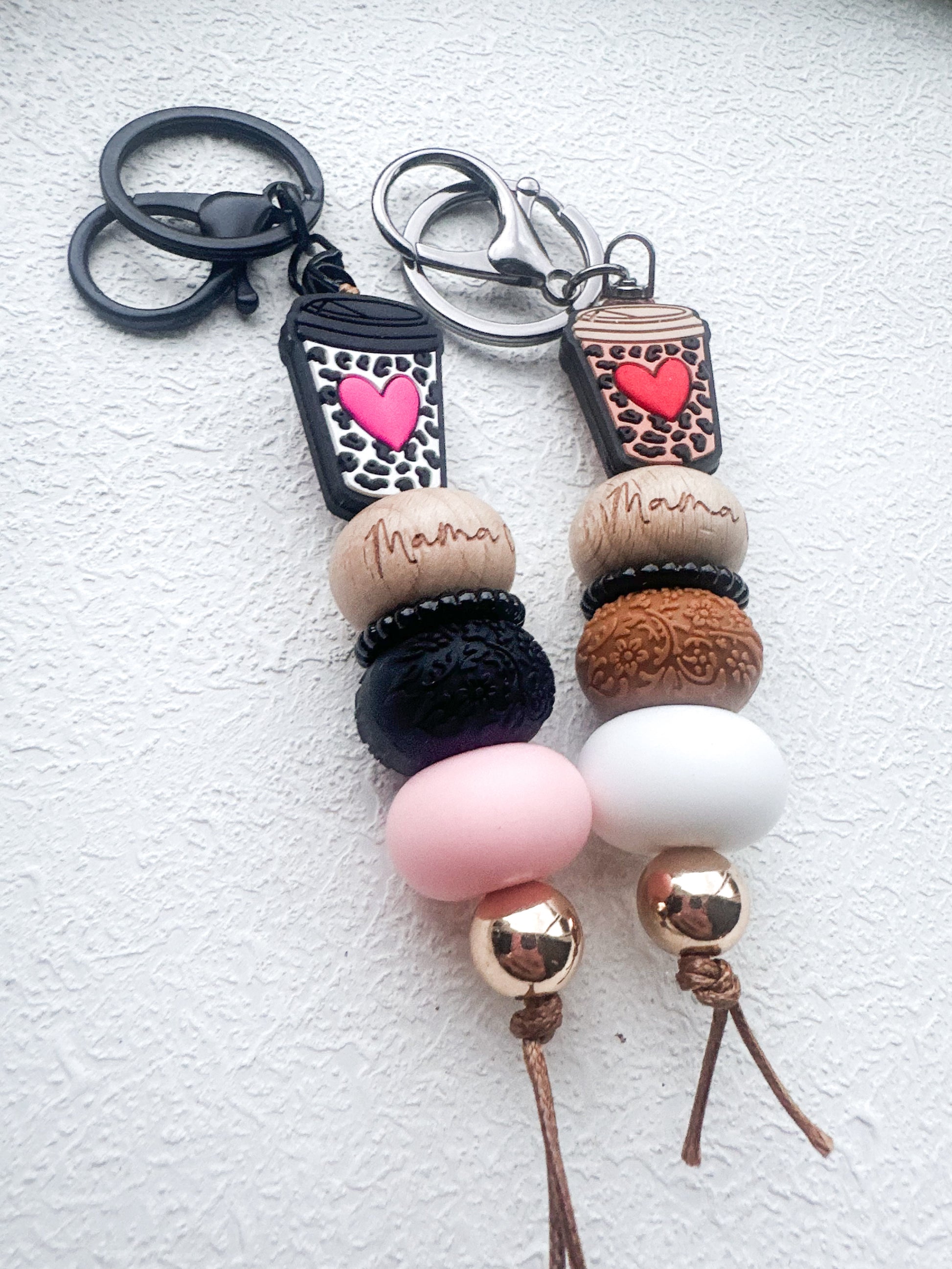 These are our stunning handmade keychains; made from high quality Silicone, acrylic & Beechwood beads.