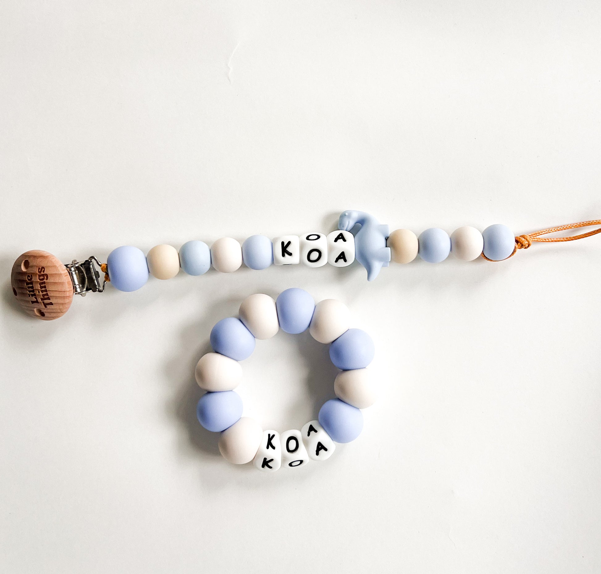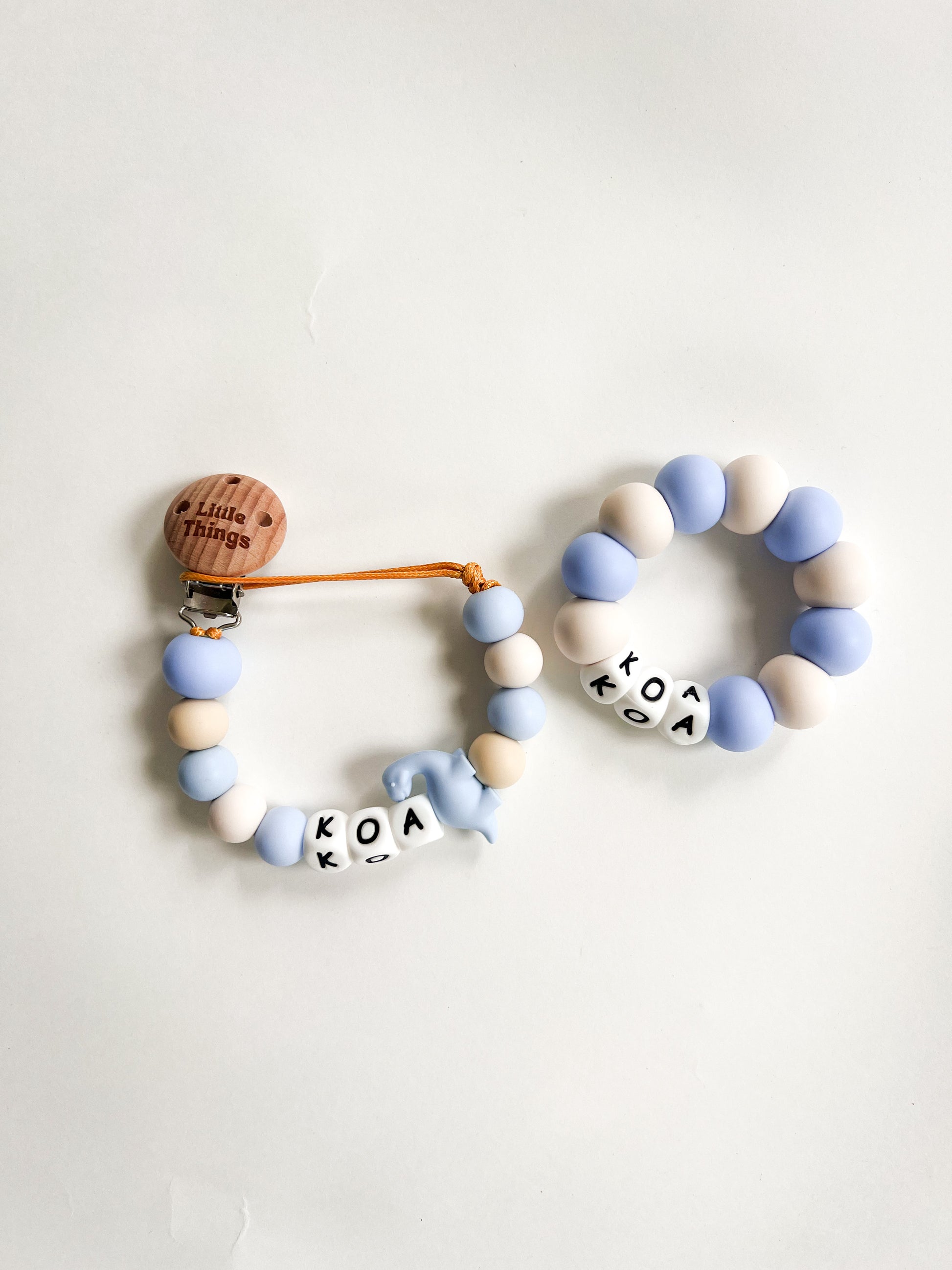 Personalized Dino Dummy Clip & Teething Ring Bundle