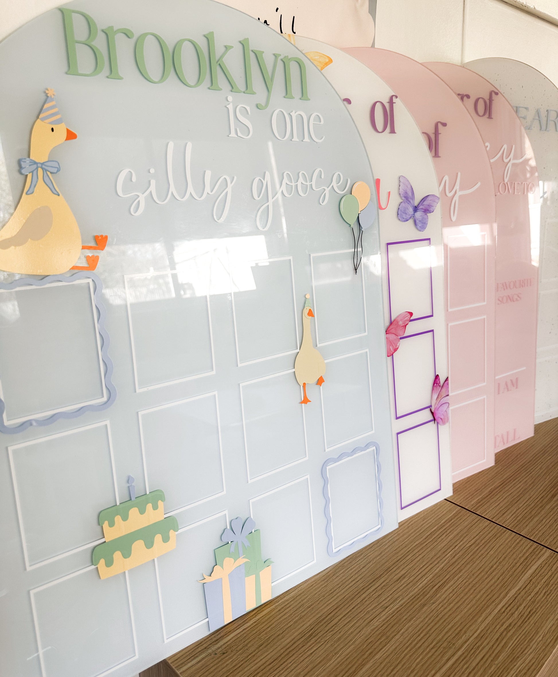 Our fully custom birthday boards are the perfect addition to your little ones next birthday! With the choice of milestone writing or photos these are the sweetest additions to keep forever! As these are customised to your little ones please in the box provided add in any info you want me to know before designing such as your little ones: NAME, AGE , BIRTHDAY DATE & ANY AND ALL DETAILS ABOUT DESIGNS SUCH AS COLOUR SCHEMES THEME SPECIAL DETAILS. Also feel free to send me any inspo photos you may have to our instagram!