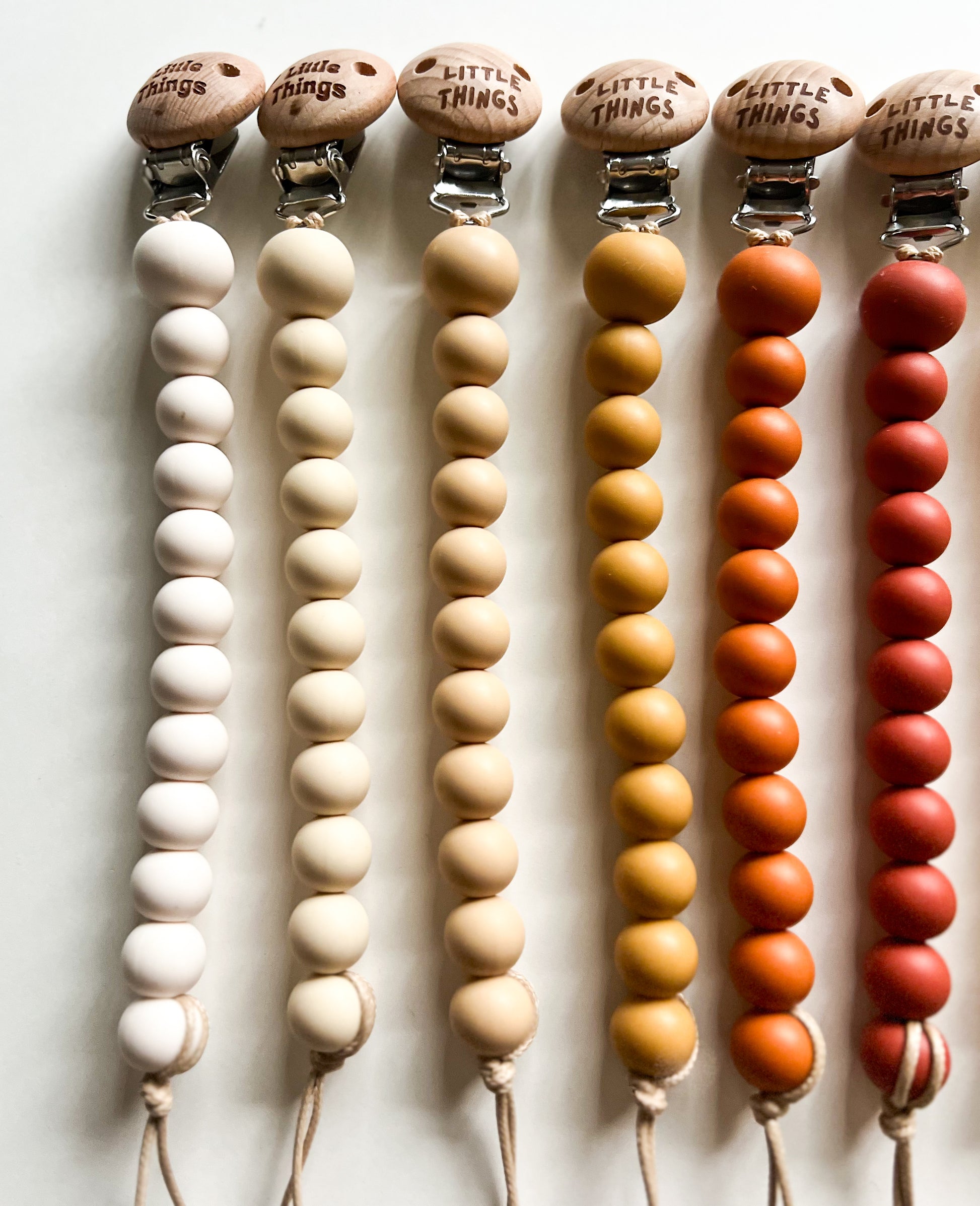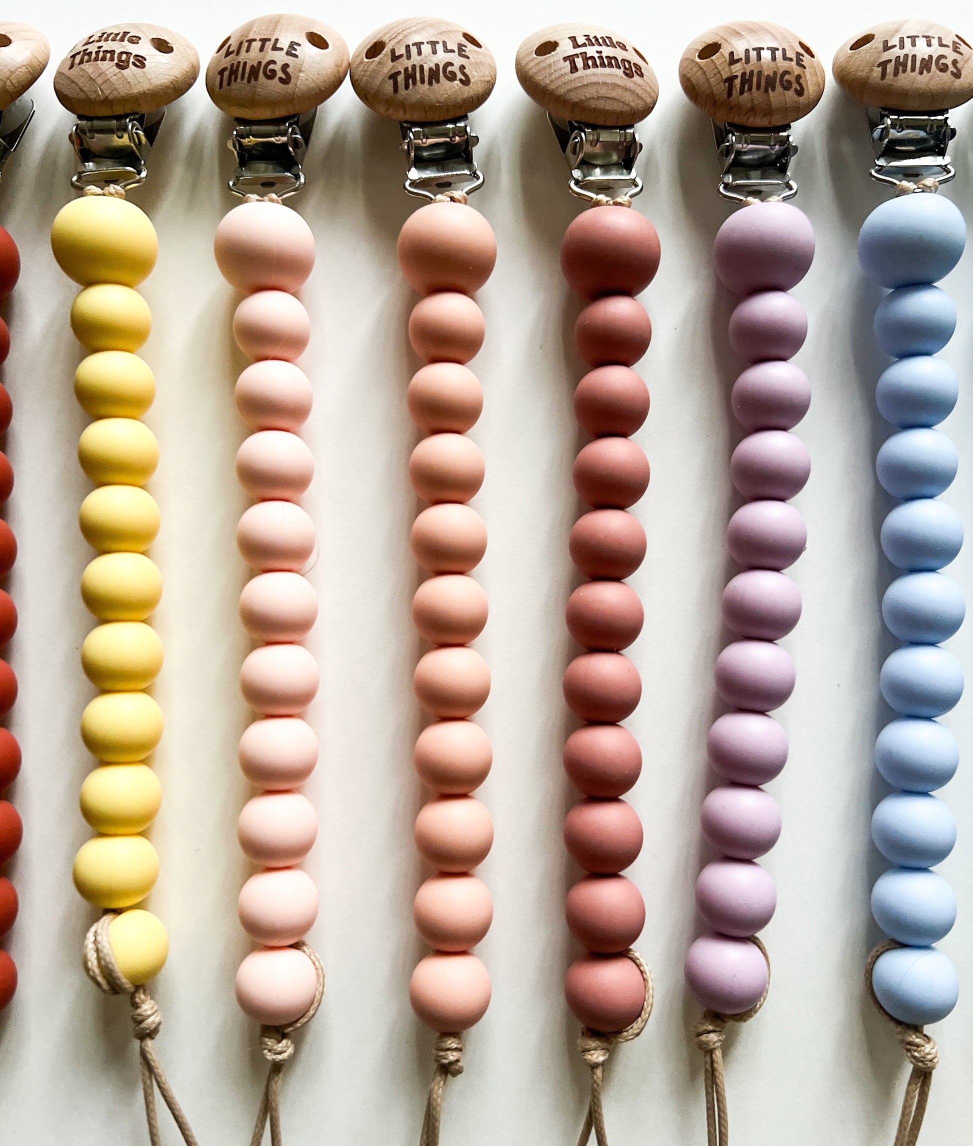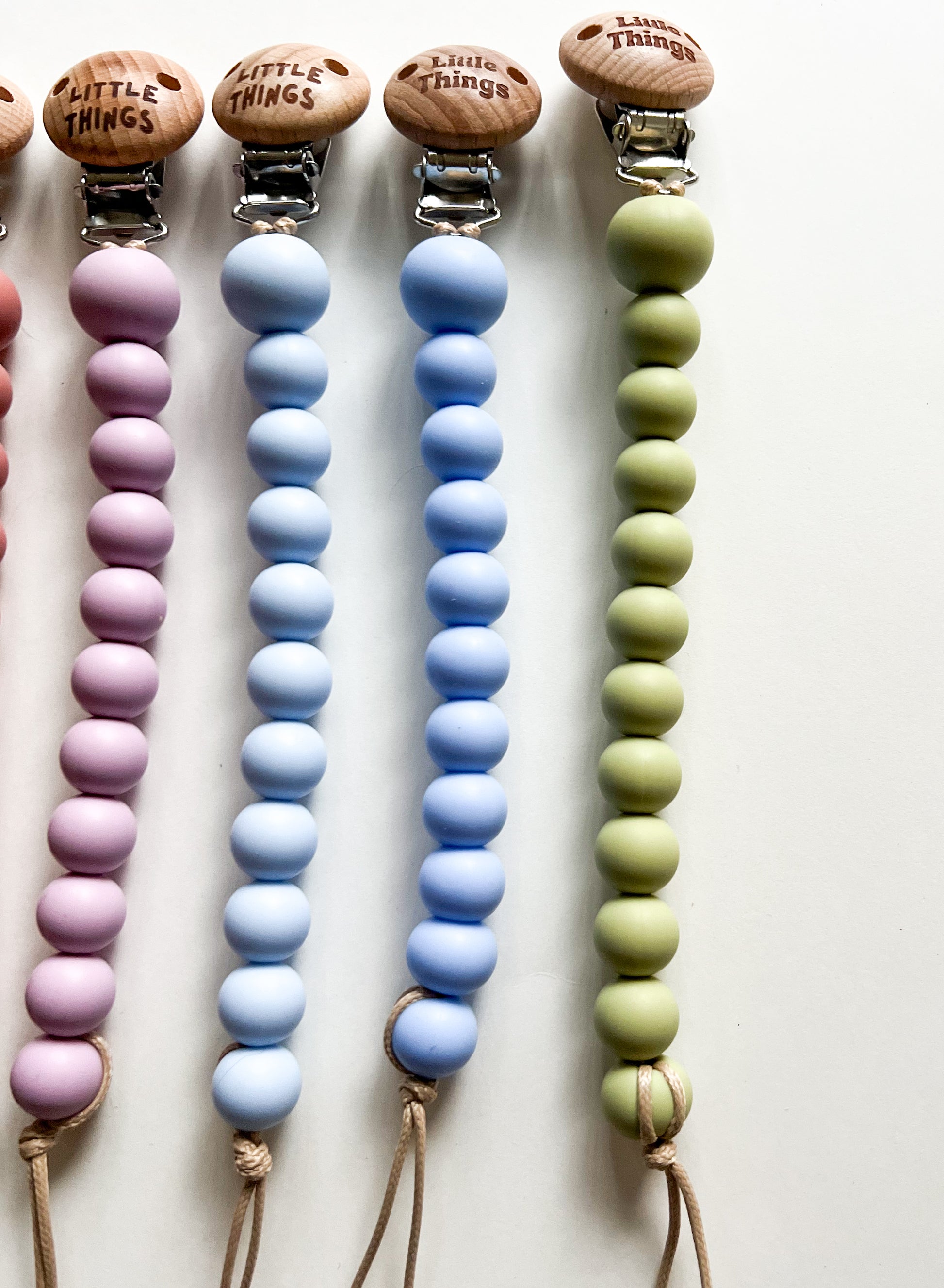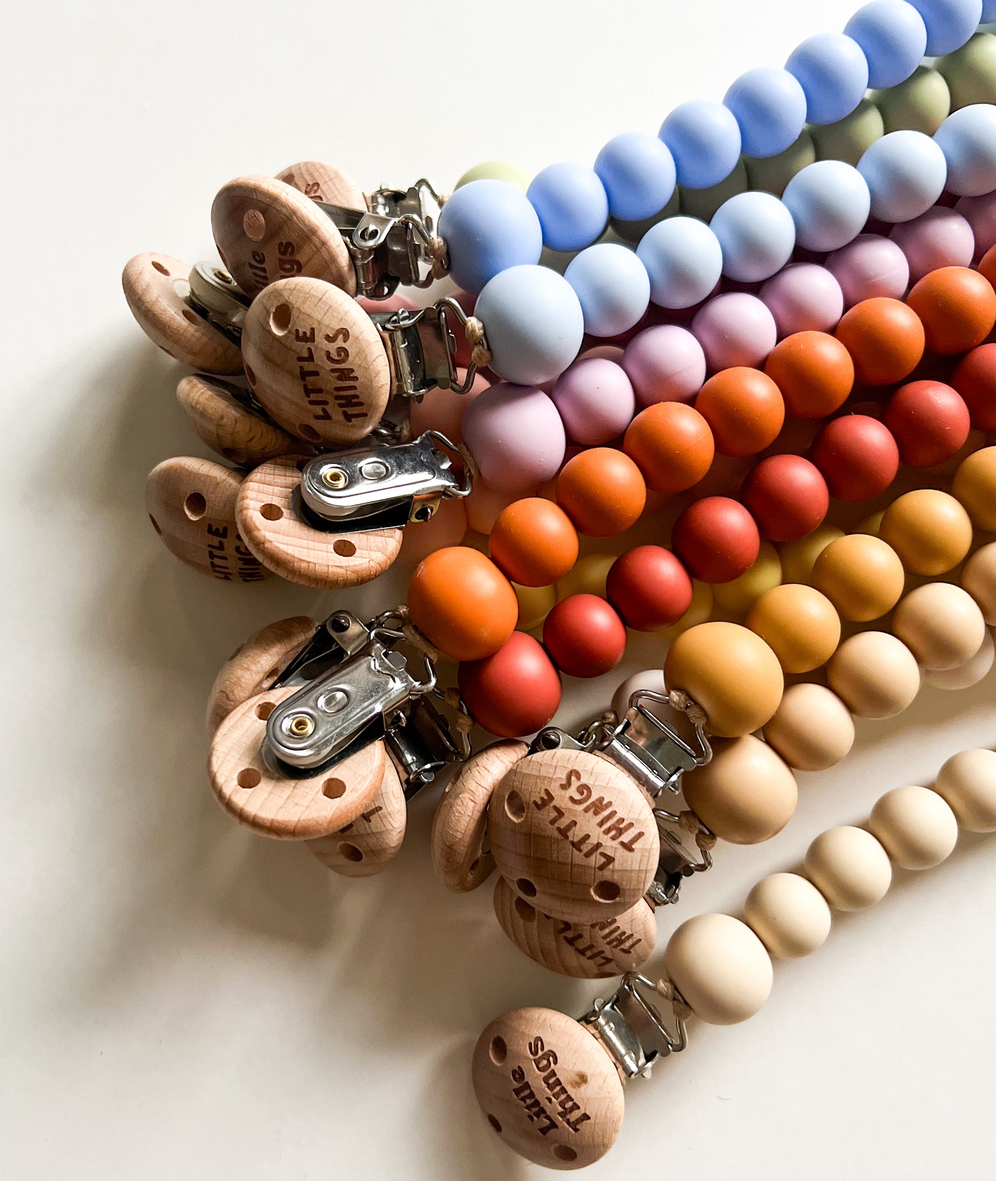 Our beautiful handmade dummy clips are made from the highest quality silicone beads and beechwood clips. Our items are independently lab tested & approved, following all safety guidelines.
