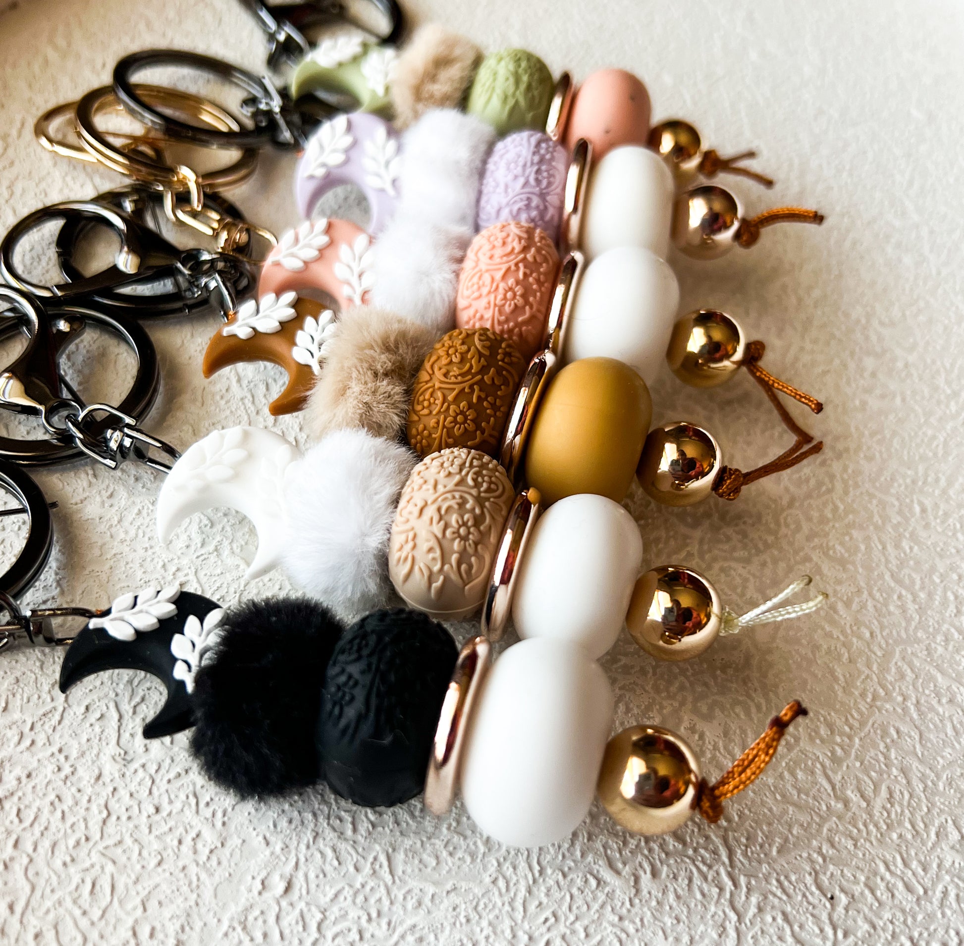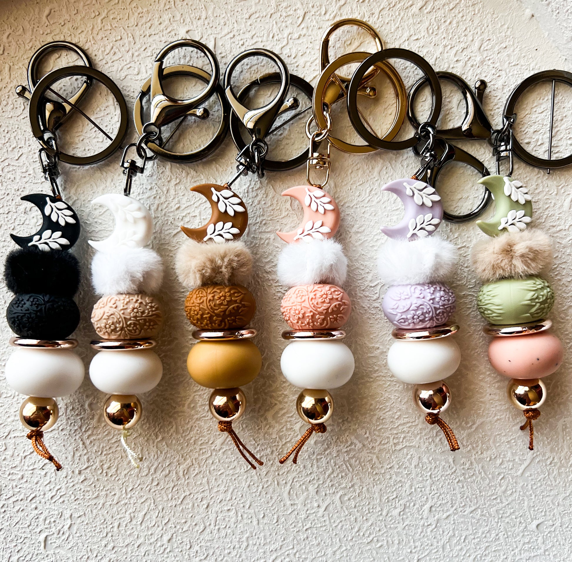 These are our stunning handmade keychains; made from high quality Silicone, acrylic & Beechwood beads.