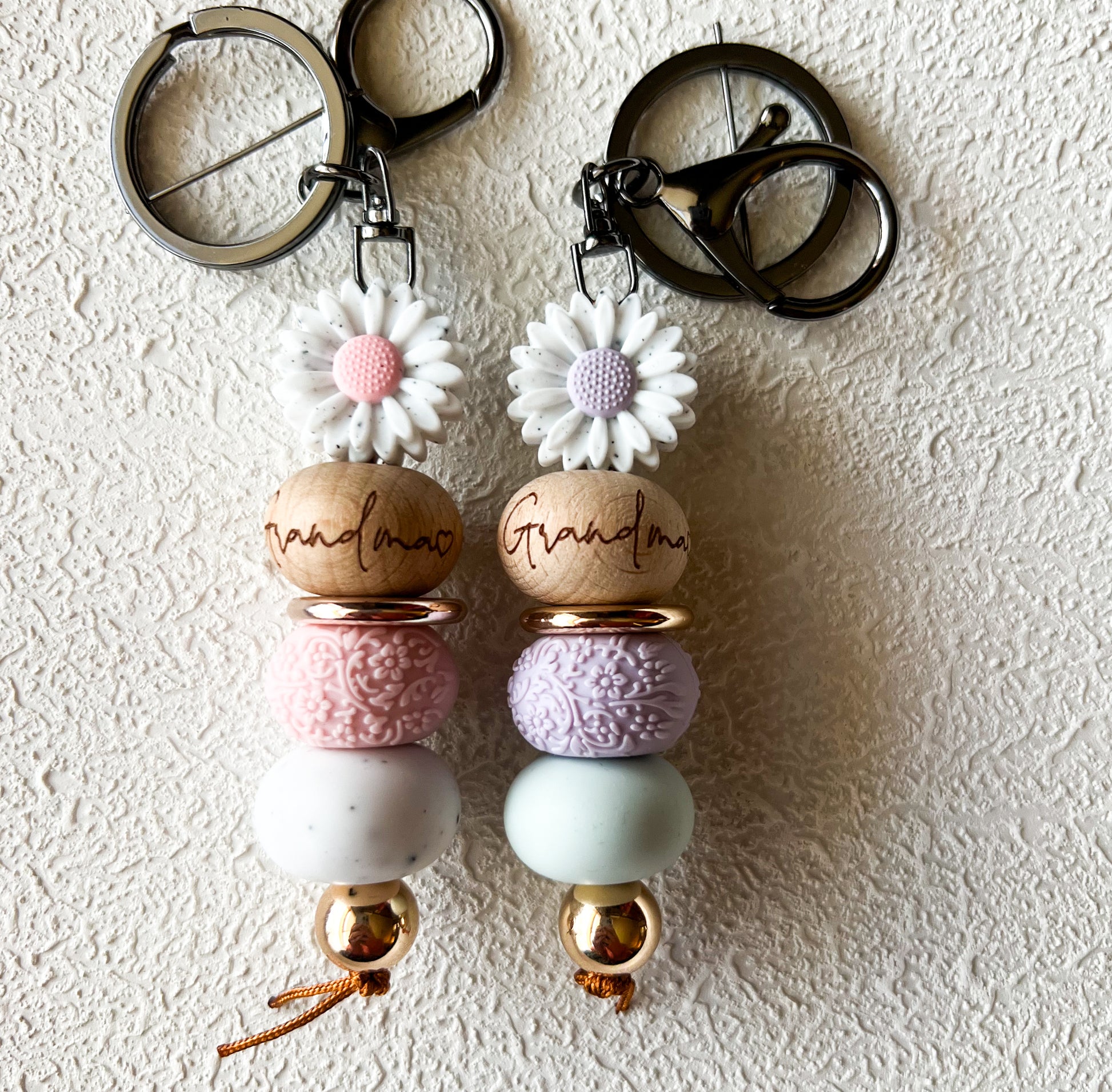 These are our stunning handmade keychains; made from high quality Silicone, acrylic & Beechwood beads.