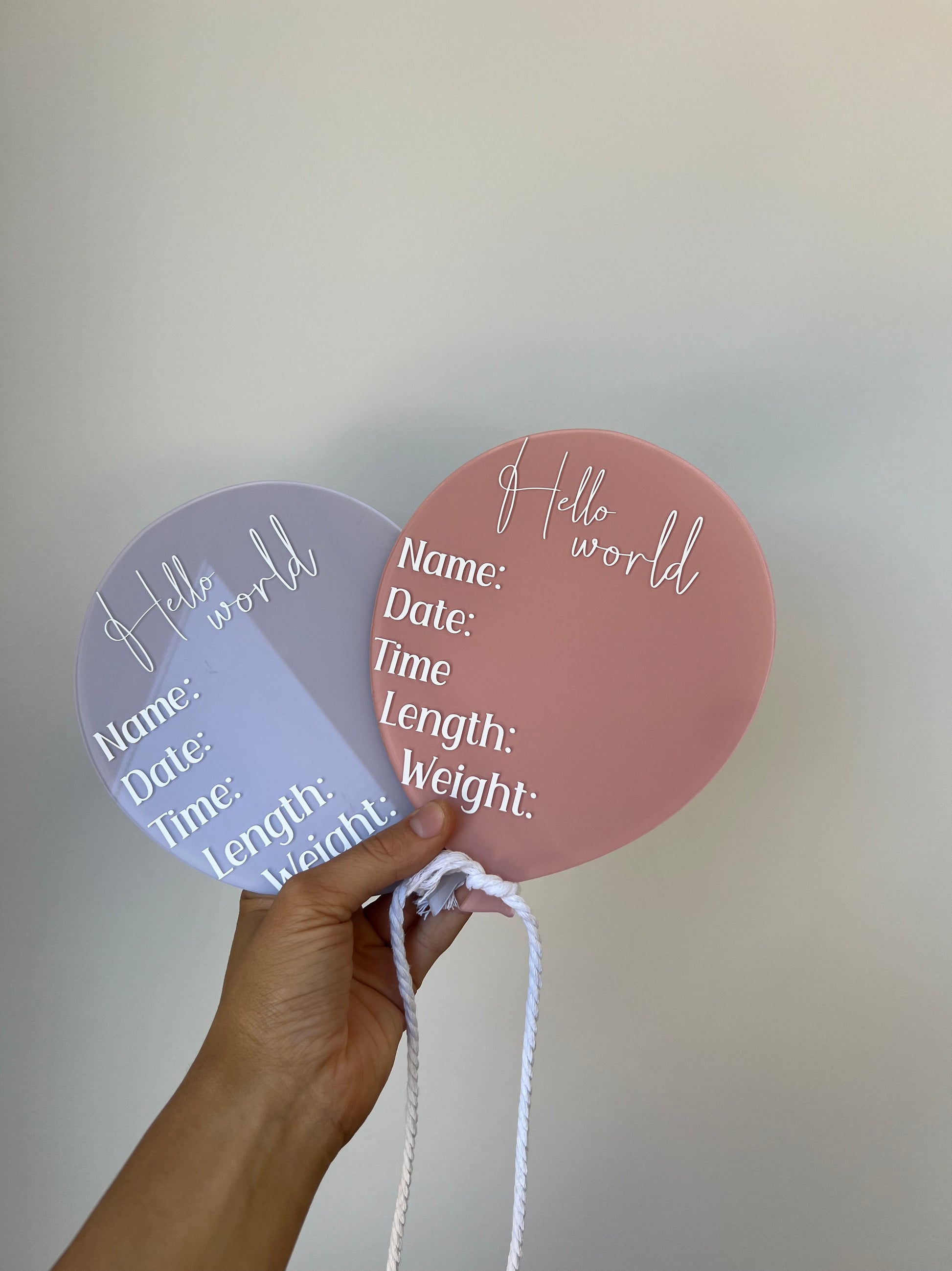 Our hand painted acrylic ‘hello world’ keepsake balloon signs are the most timeless piece to add into your birth bag today!