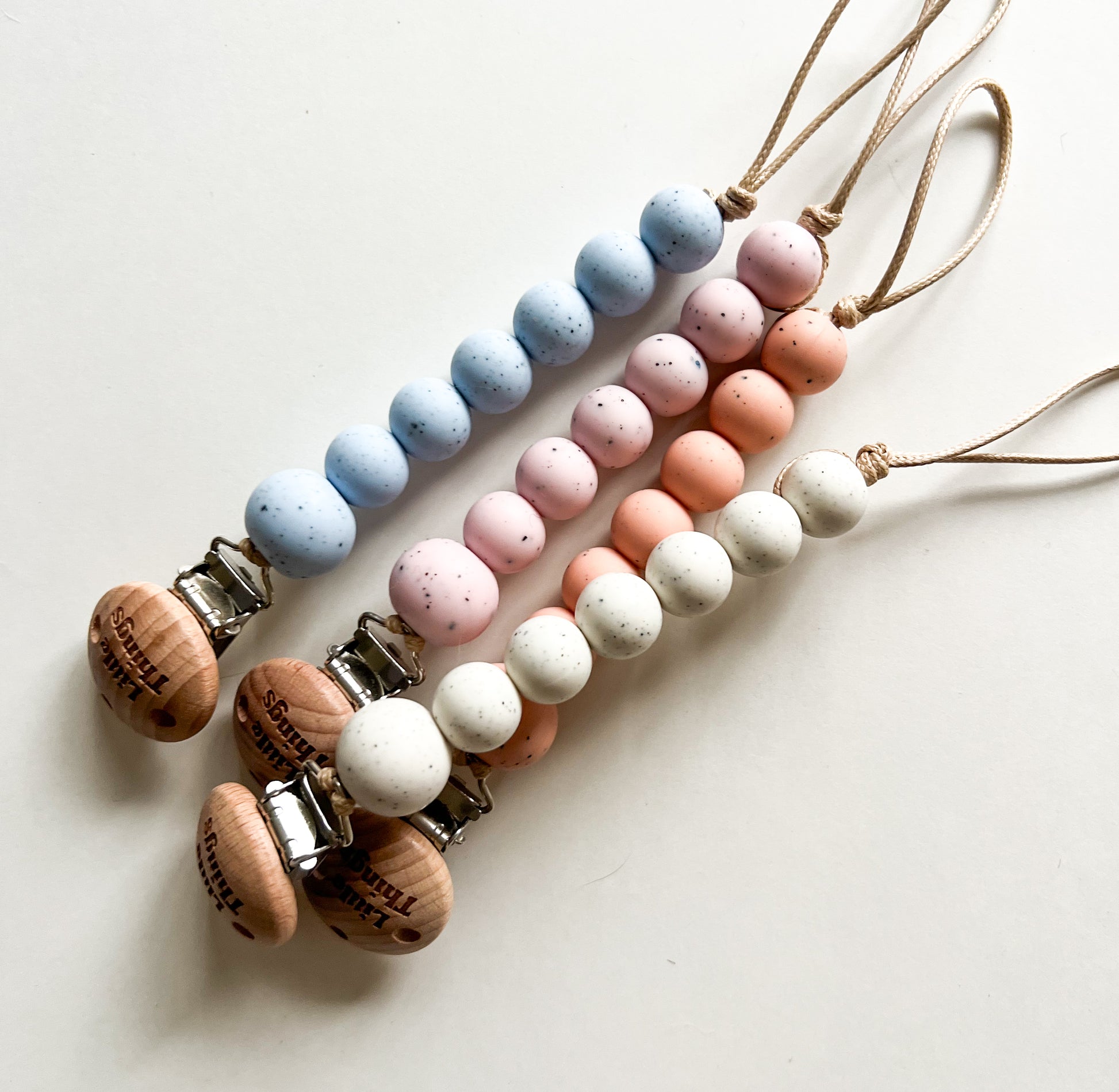 Dummy clips & Teething rings are made from raw round beads and silicone beads which are BPA & toxin free.