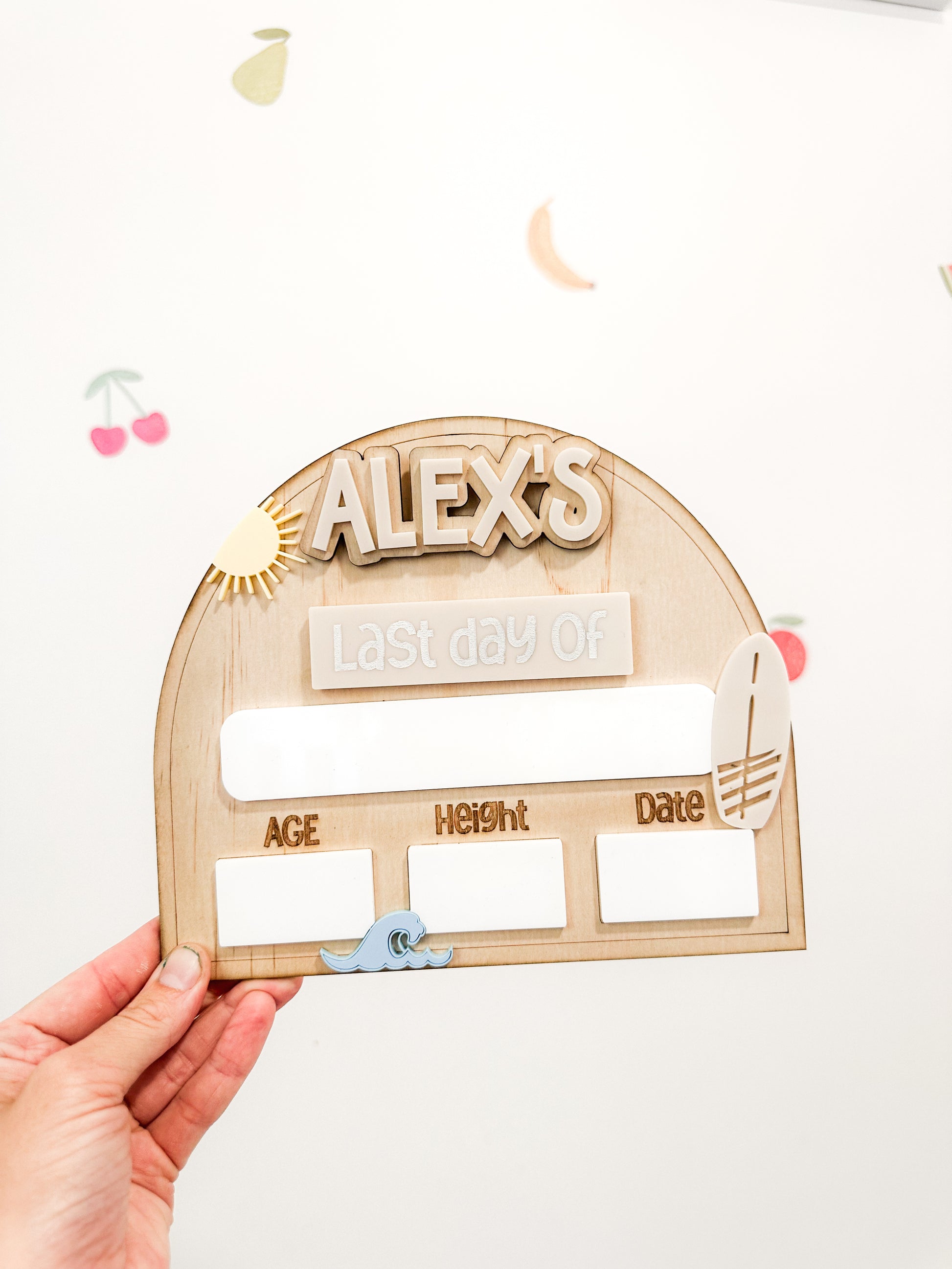 With multiple designs available, each board includes spaces to personalise your child’s milestone, such as: