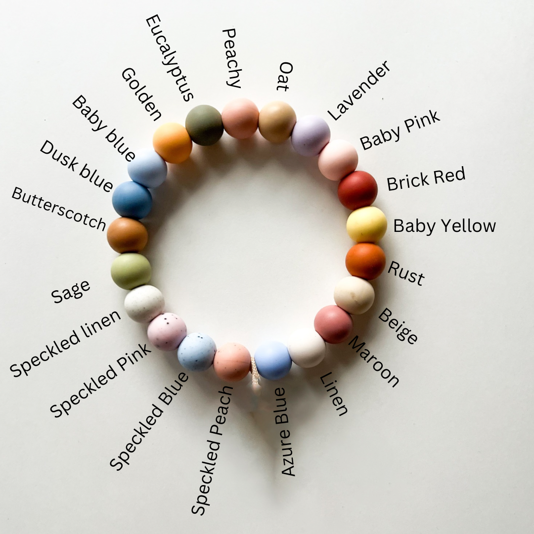 Made with Food grade silicone Beads & Raw timber beads that will not absorb odour or support growth of mould or bacteria.