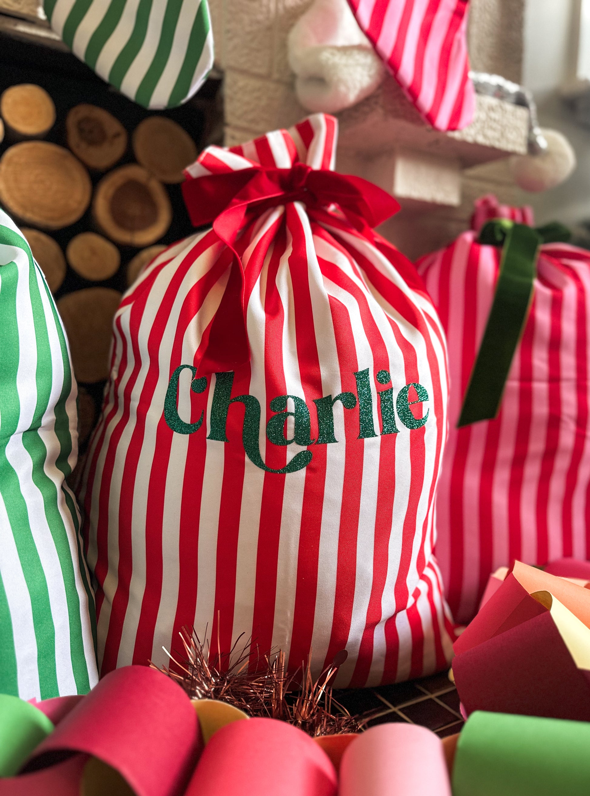 Each sack can be personalised with your child’s name in glitter or classic vinyl — creating a keepsake they’ll treasure year after year. Perfect for holding all those special gifts straight from Santa, and large enough to fit even the biggest surprises!