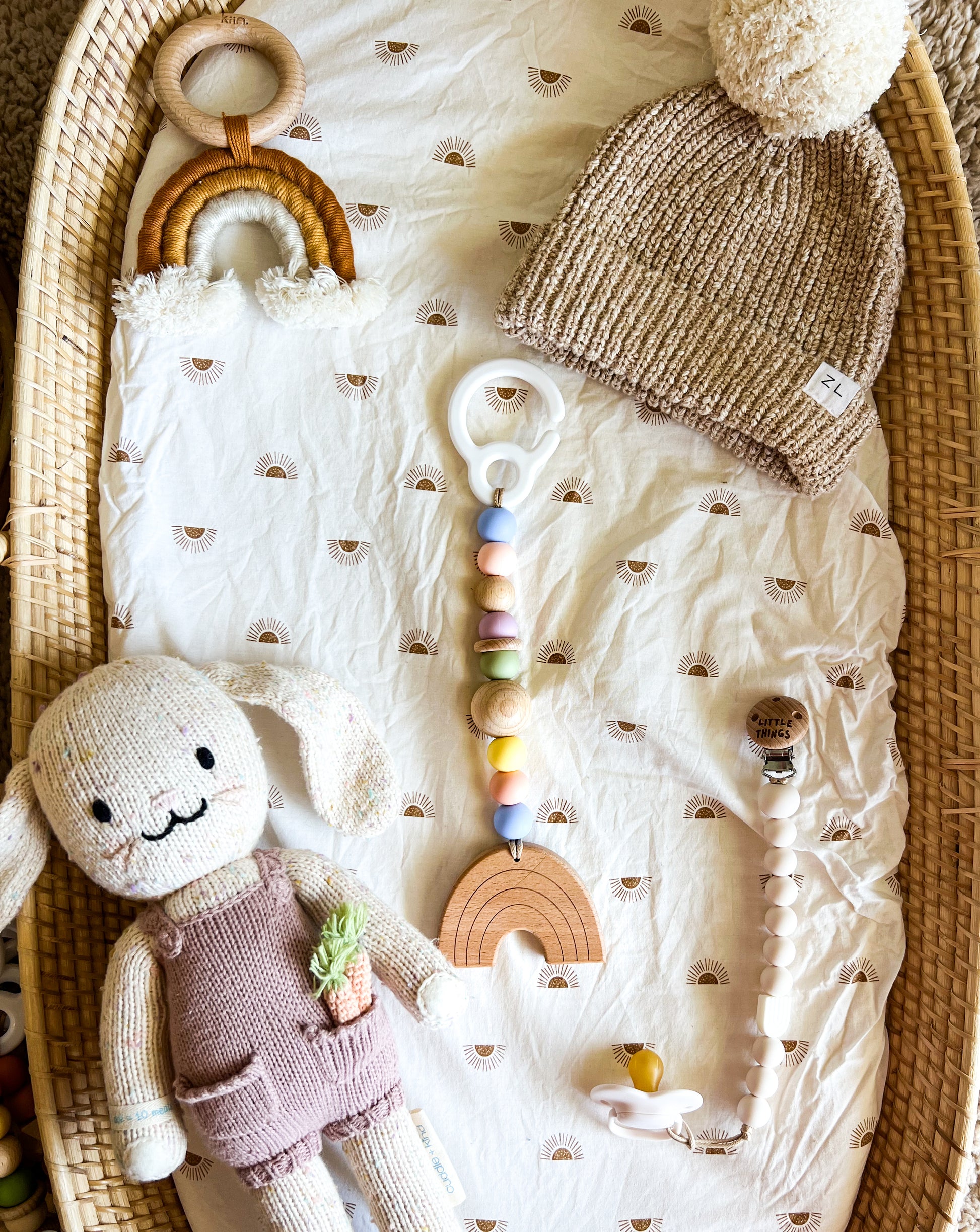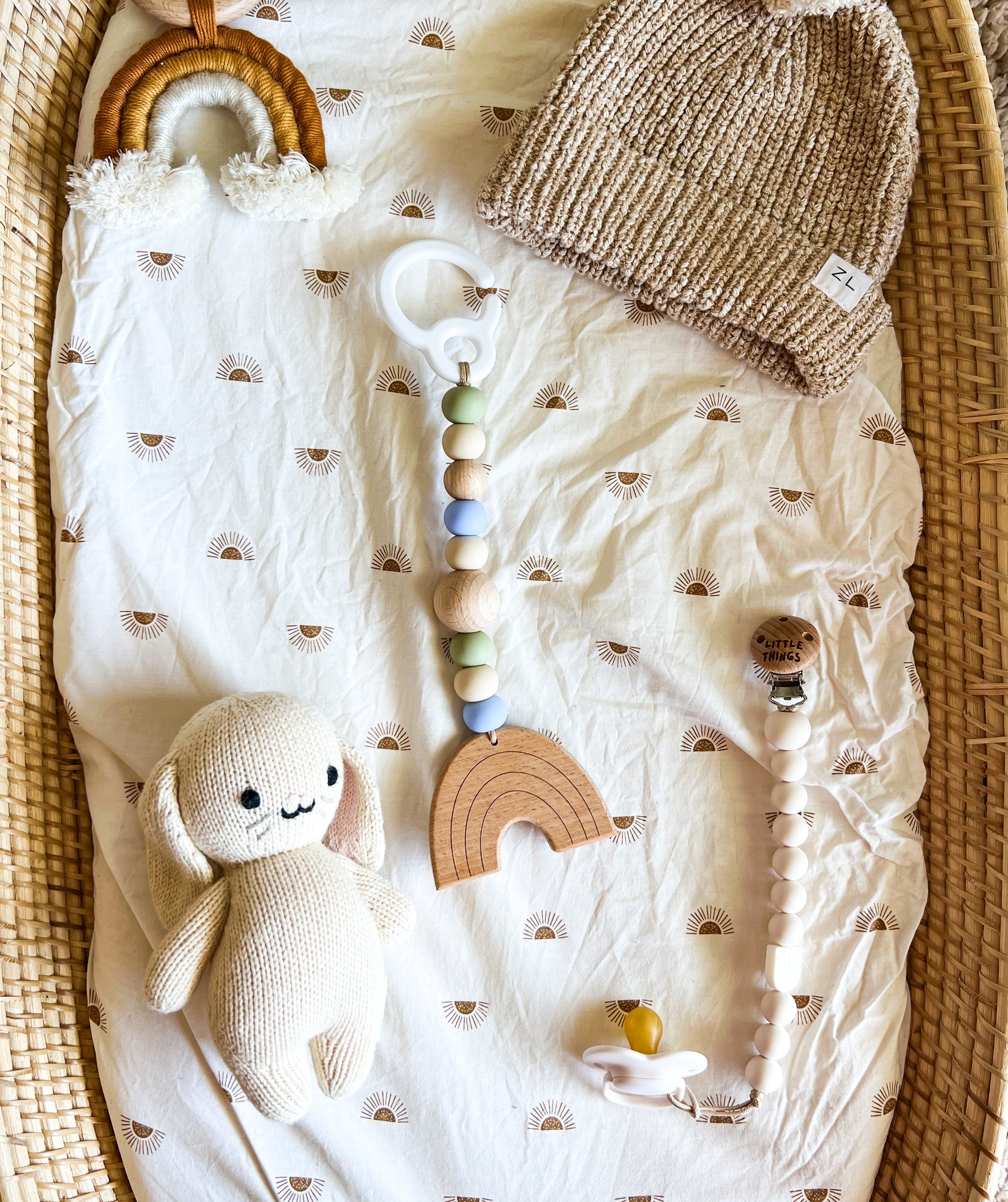 Great sensory tool for your little one whilst sitting in a rocker, laying on a play mat & with our hooks this means you can take it out and about and hook onto anything!