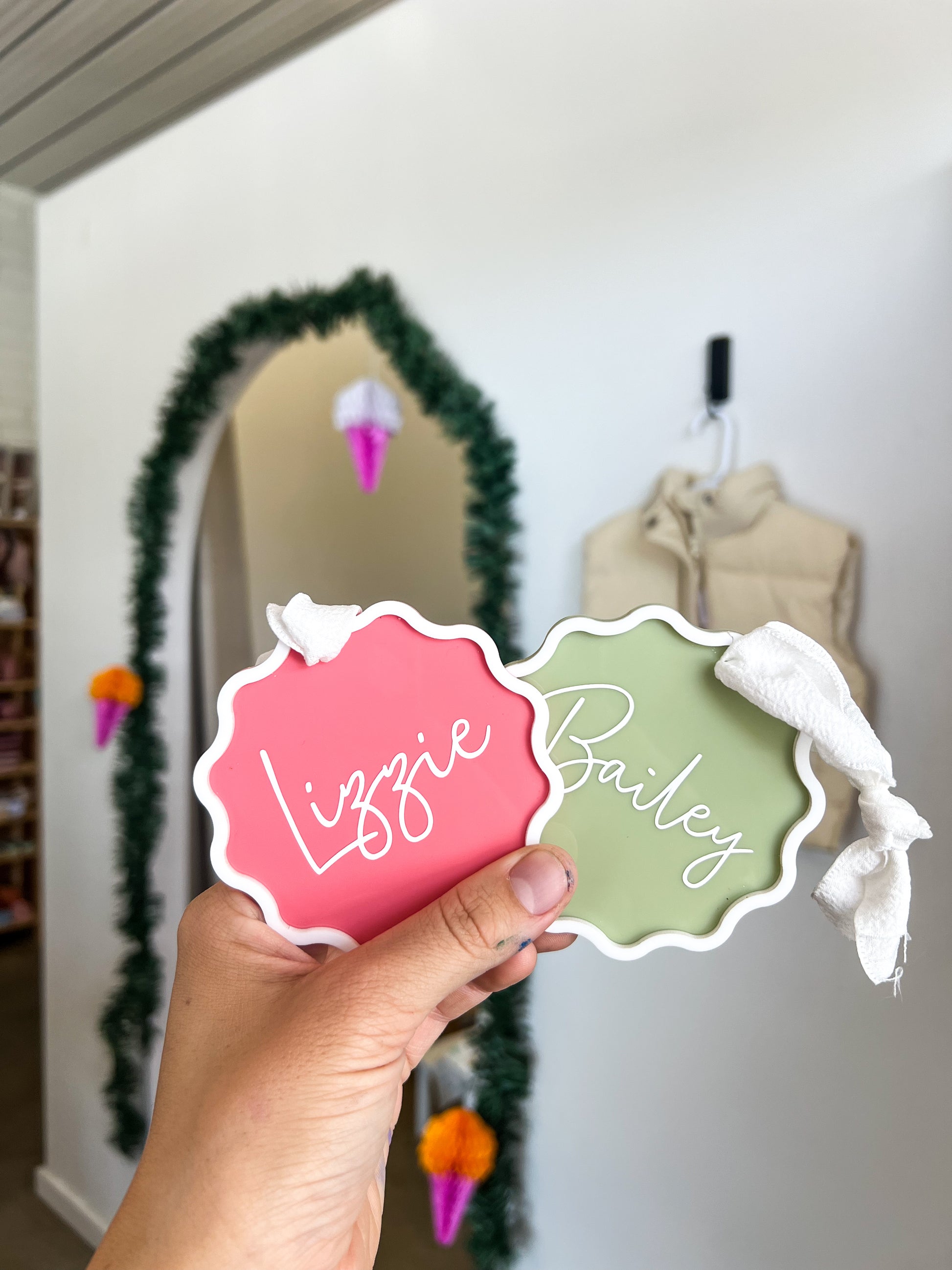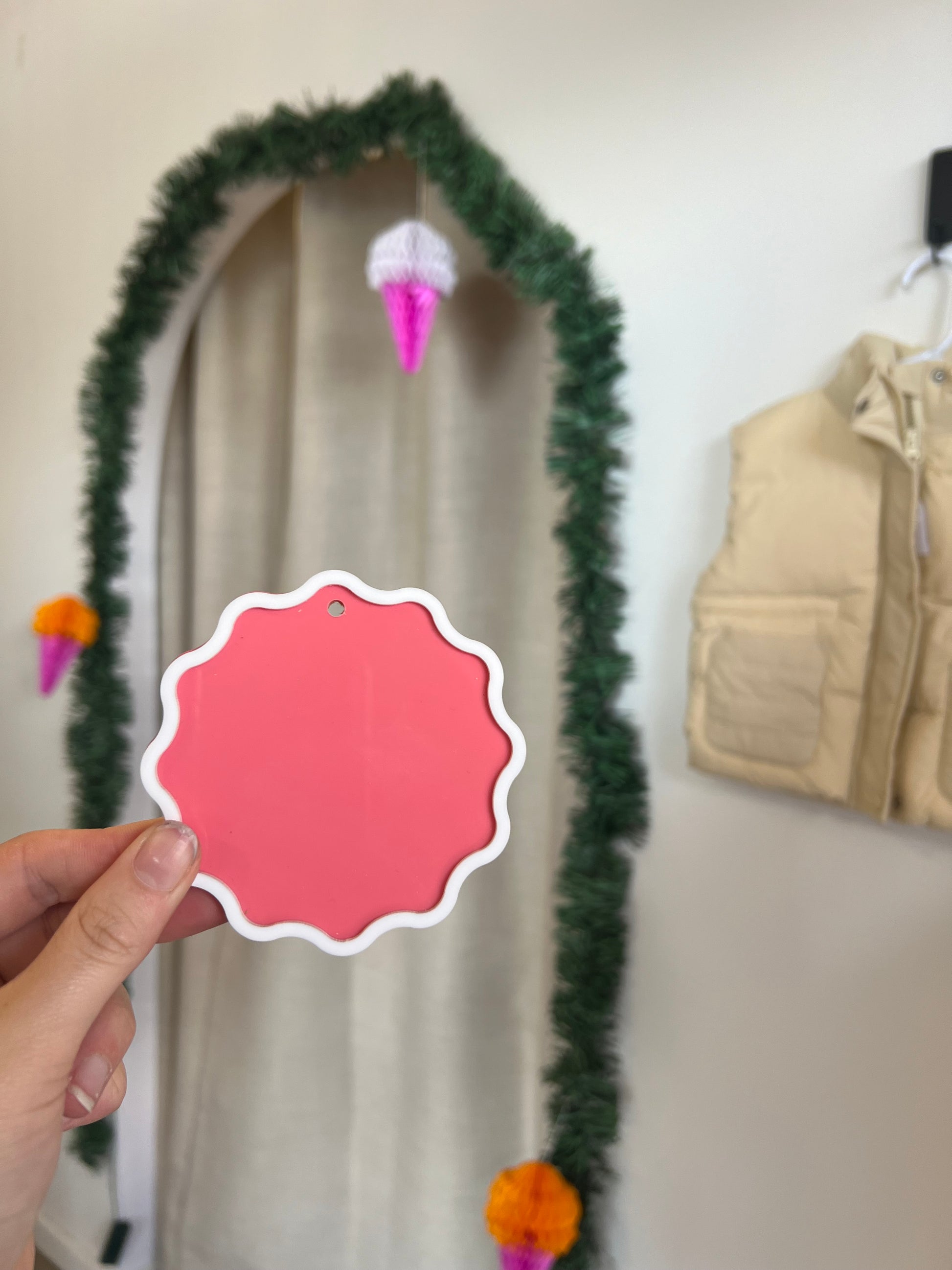 Bring a bright and personalised vibe to your holiday décor with our Scalloped Christmas Bauble Collection. Featuring a charming scalloped-edge design and a palette of bright fun colors—orange fis, raspberry sherbet, pistachio and frosted cocoa —these ornaments are perfect for adding a modern festive touch to your Christmas tree, wreaths, or tabletop displays.